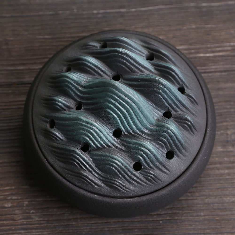 مبخرة مصنوعة يدويًا من السيراميك، مزودة بموقد مخروطي الشكل، مع حامل اعواد بخور.